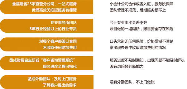 为客户提供“线上+线下”的财税辅佐模式。服务是采用“团队对一”的一套完整流程体系.
